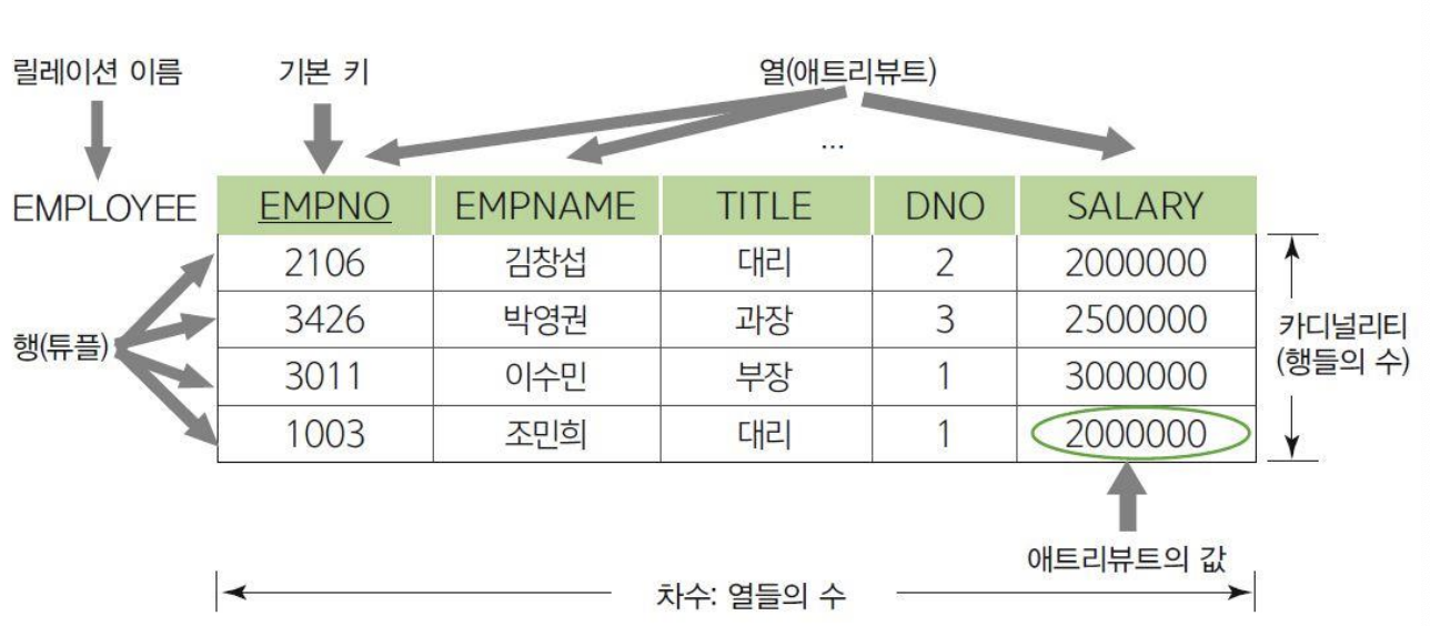 - 릴레이션은 '릴레이션 스키마'와 릴레이션 인스턴스'로 구성된다.